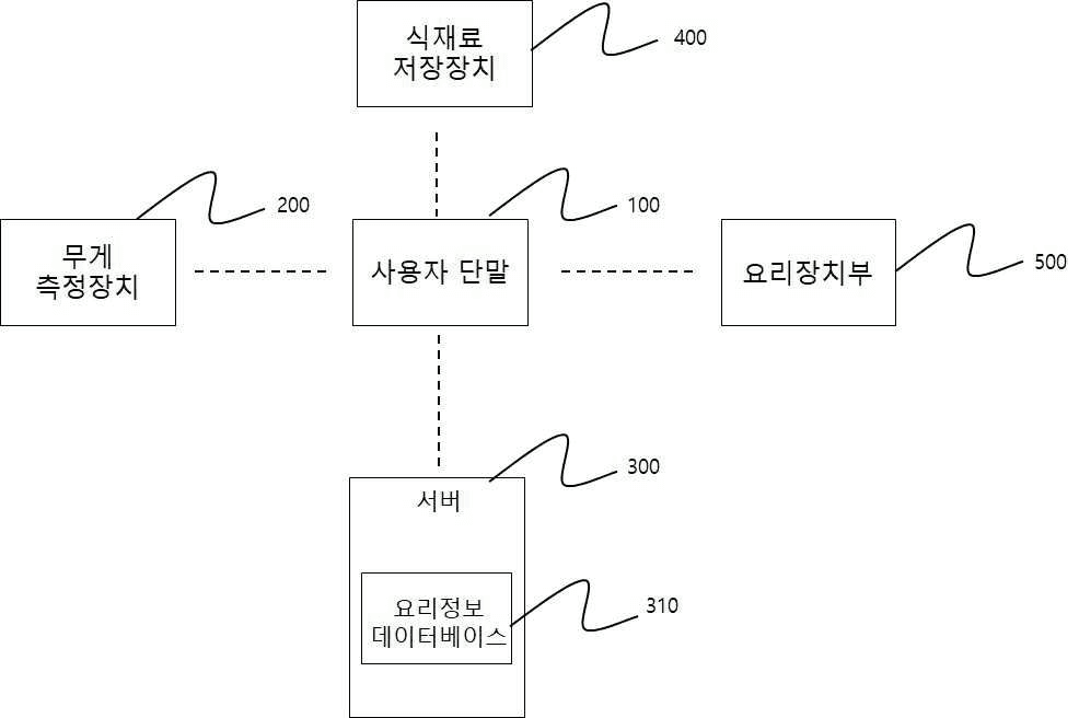 `상기 식재료의 무게를 측정하는 무게측정장치;` / `무게측정장치(200)는 식재료의 무게를 측정하는 구성이다.`